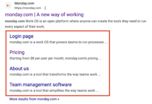 When someone searches your company (e.g., “Monday.com“), it can help certain types of search engine users get where they need to go more quickly.