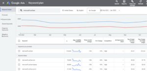Once you’ve narrowed down your list, you can use Google Keyword Planner to estimate the CPC/CTR and see search volume trends for each keyword.