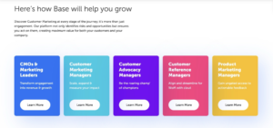 On your SaaS website, you should also use internal links in the form of clickable assets. On Base.ai’s homepage, individual buttons with labeled descriptors highlight where users can navigate to a specific product use case.