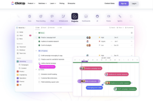 For example, ClickUp’s homepage highlights all of its core features with clickable buttons.