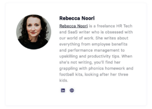 At the end of every article on Benepass’s website, they include a photo, name, and short blurb about the author. They also link to their social media accounts.